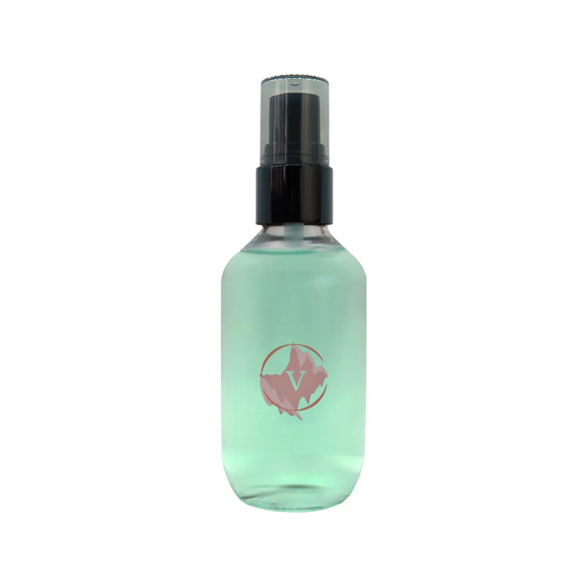 - With eyes closed, hold the bottle at arm’s length and spray lightly over your face